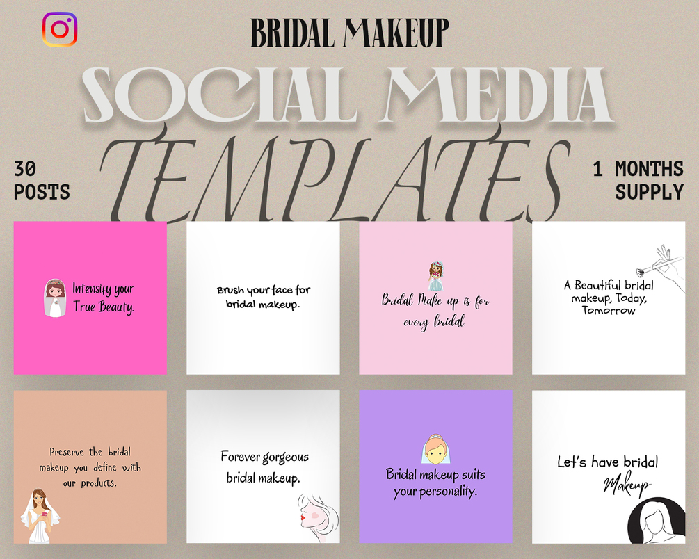 Pack of 30 Bridal Makeup Posts for Instagram - Ready to Use - Multiple designs